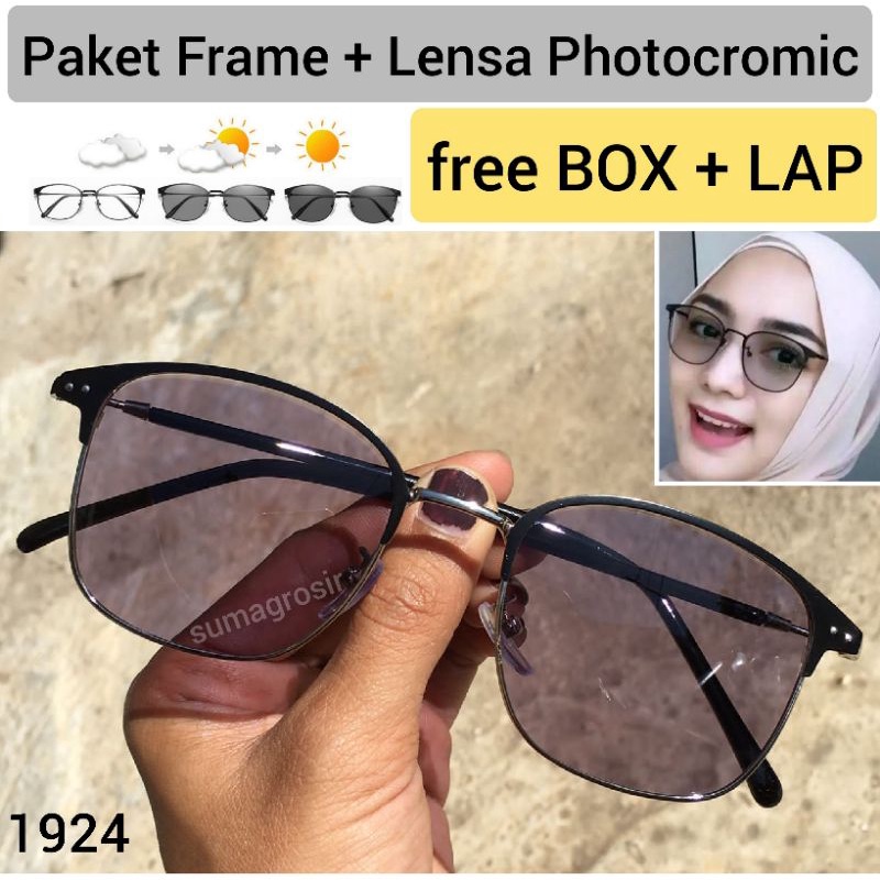 COD - Kacamata Lensa Photocromic Model Kotak Pria Wanita Frame Besi Alloy Photochromic Fotokromik