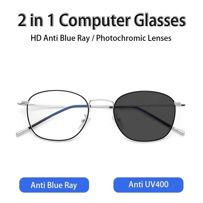 2 In 1 Kacamata lensa photocromic anti radiasi wanita pria kacamata bingkai Titanium komputer Anti UV fotocromic #61