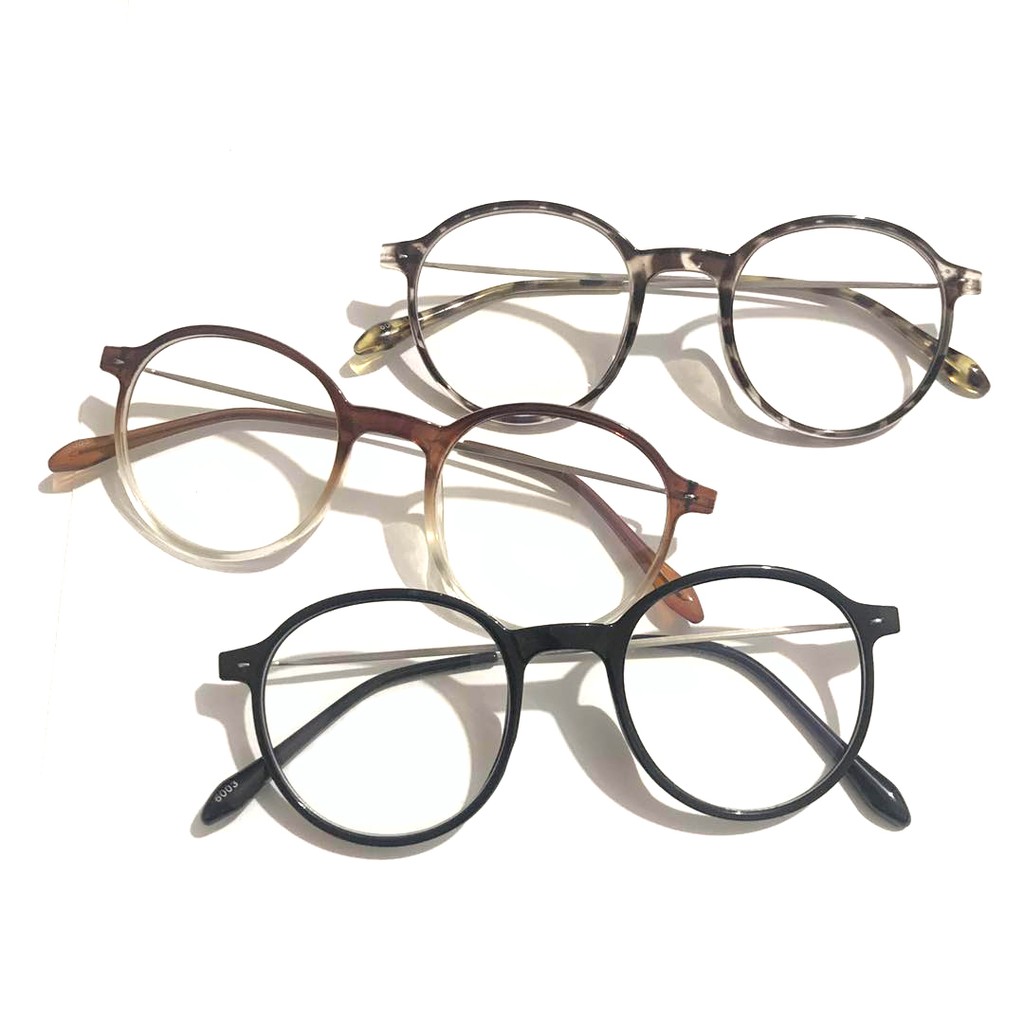 Harga Kacamata Wanita Hitam Pria Frame kacamata Metal Round Sunglasses Anti Radiasi Lensa Transparan