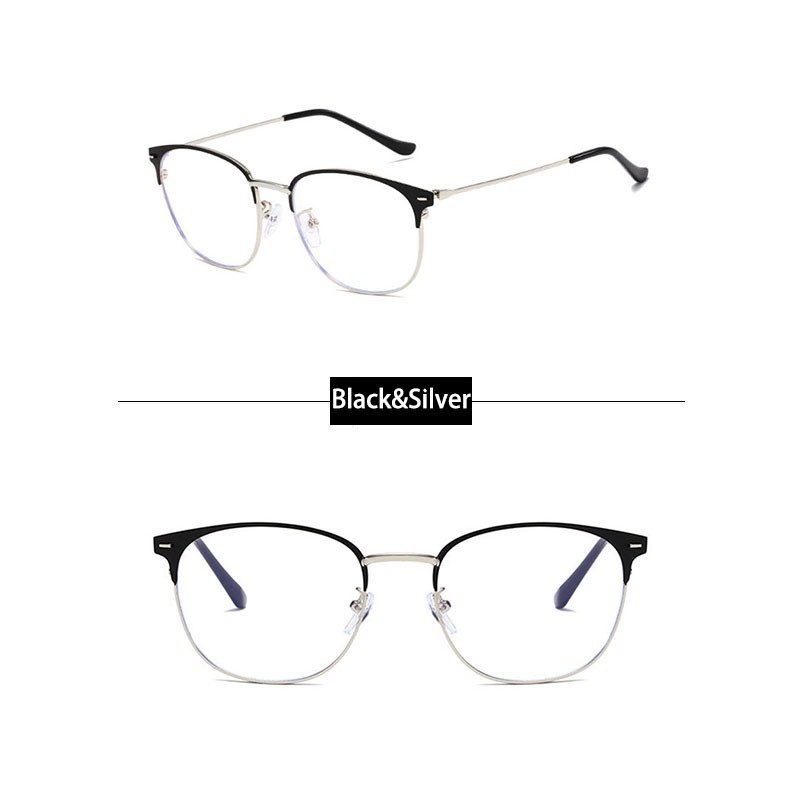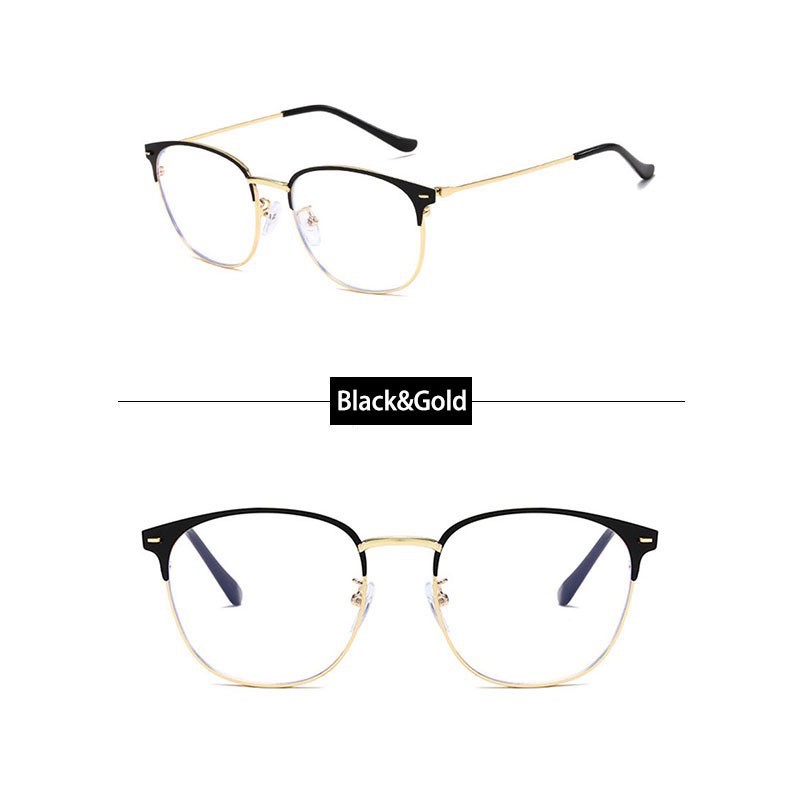 Kacamata Wanita Hitam Pria Frame kacamata Metal Round Sunglasses Anti Radiasi Lensa Transparan