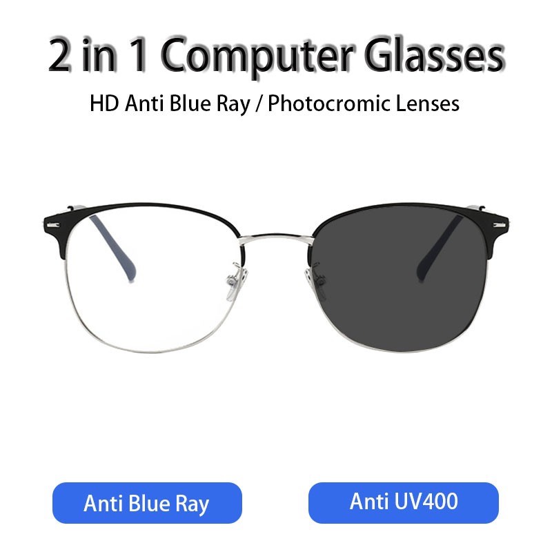 Harga KACAMATA ANTI RADIASI PHOTOCROMIC 2 IN 1 FASHION WANITA PRIA FRAME PHOTOCHROMIC