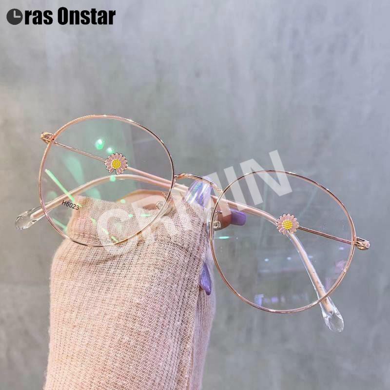 【Bayar di Tempat】100% Anti Blue Kacamata Retro Bundar Eyeglasses Wanita Kacamata Fashion Retro Frame